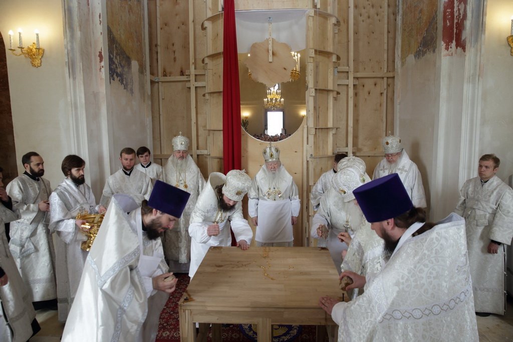 За богослужением пел хор Коломенской духовной семинарии под управлением диакона Николая Глухова.