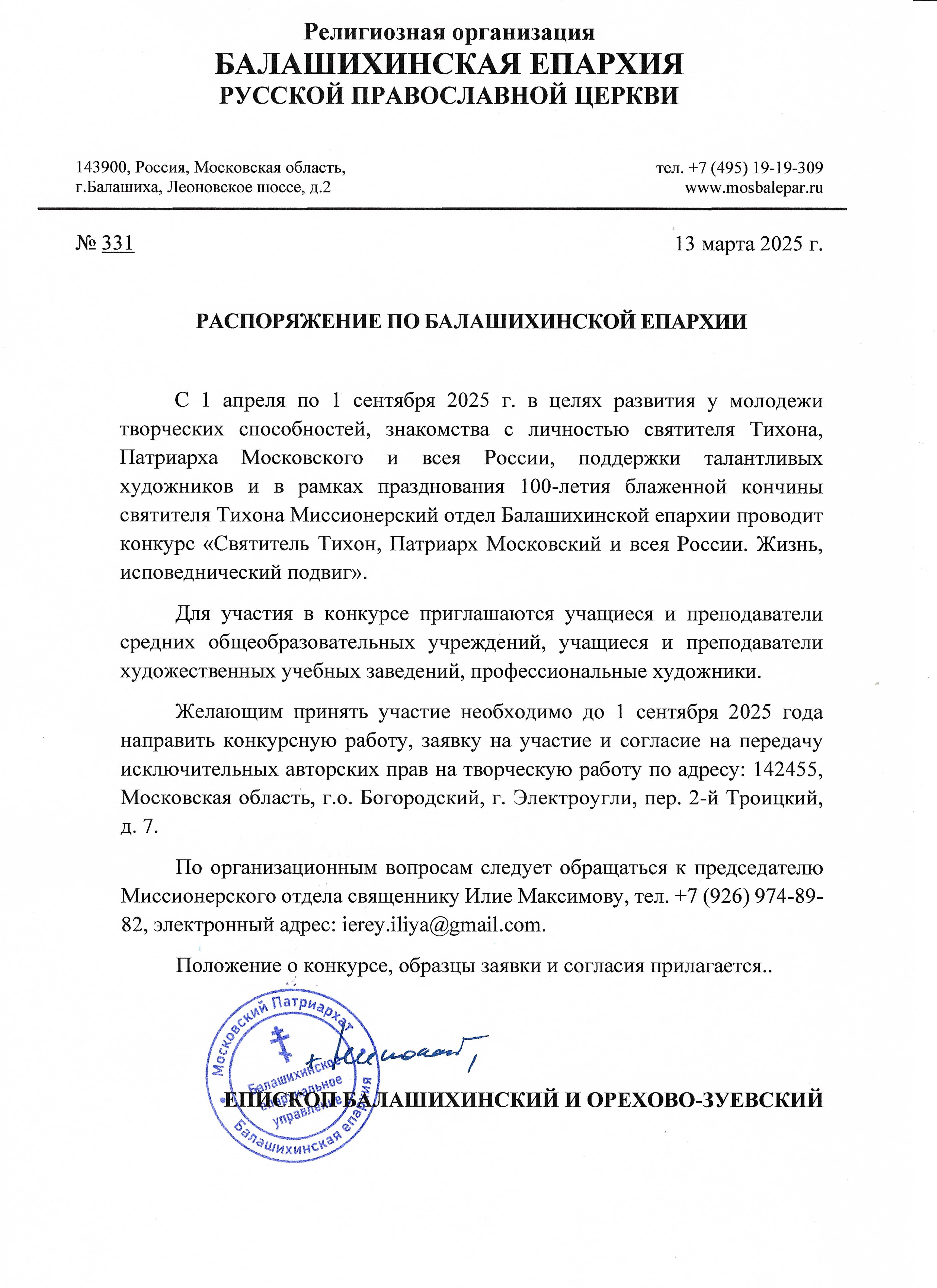 О предстоящей ежегодной исповеди духовенства Балашихинской епархии