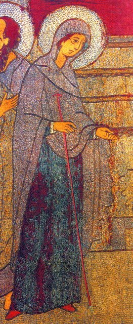 В православном сознании особое попечительство о странниках усвоено Пресвятой Богородице. Не случайно одна из древнейших наших икон получила наименование Одигитрии, или Путеводительницы. Существует целый ряд икон, изображающих Пресвятую Богородицу с таким традиционным атрибутом путешественника, как посох. Именно такой предстала Пречистая Дева в видении пономарю Юрышу или преподобному Сергию Радонежскому.