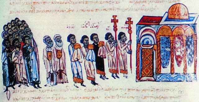 Изображения паломнических процессий — правда, отправляющихся на недалекое расстояние, известны по Византийским иконам