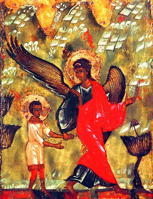 Гораздо реже в нашей иконописи встречается сюжет Бегства в Египет. Один из примеров — клеймо ярославской иконы Благовещения Пресвятой Богородицы с акафистом. С этим событием ранних дней земной жизни Богомладенца Христа связан ещё один сюжет, изображающий странствие. Чинопоследование благословения на путешествие, упоминающее спутника Ангела, наглядно иллюстрирует сюжет житийных икон Иоанна Предтечи. Здесь изображается Ангел, ведущий по пустыне отрока Иоанна.