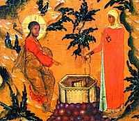 В дни Своей земной жизни Спаситель большую часть времени проводил в пути. Не имеющий, где главу подклонити, Господь наш Иисус Христос имел вид путешествующего в Иерусалим (Лк. 9:51). Весьма выразительны изображения путешествующего Спасителя в сюжете Его беседы с самарянкой (см. Ин. 4:9–42).
