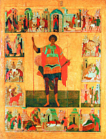 Житийные иконы святых открывают новую страницу воинской тематики в иконографии. Святые воины — покровители древних русских городов и христолюбивого воинства, имели житийные иконы со множеством клейм, подробно иллюстрирующих их жития. Но в житийных клеймах было принято изображать важнейшие моменты духовного становления святых