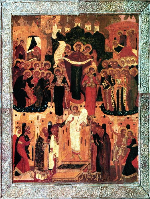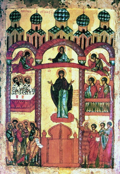 К концу XVI в. Новгородский извод получил общерусское распространение. Постепенно происходит объединение двух главных изводов Покрова и появляются существенные дополнения.