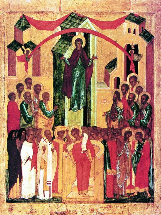 Праздник Покрова Пресвятой Богородицы — один из самых почитаемых на Руси. Событие, послужившее основанием для празднования, относится к началу Х века — оно произошло в конце правления императора Льва Философа (886–911), во время нашествия на Константинополь сарацин. При любом серьезном бедствии — а разного рода напасти постигали Византию часто — народ собирался для совместной молитвы во Влахернскую церковь, где были собраны чтимые иконы и святыни, связанные с Пресвятой Богородицей.