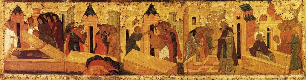 Смерть лишь сон, успение. Об этом говорят нам многие тексты, в частности, Ин. 11:11, 13–14: «Лазарь, друг наш, уснул /…/ Иисус говорил им (ученикам) о смерти его, а они думали, что Он говорит им о сне обыкновенном. Тогда Иисус сказал им прямо: Лазарь умер», или Мк. 5:39: «…что смущаетесь и плачете? девица не умерла, но спит». Кроме того, можно привести множество мест о том, что смерть не властна над человеком, принимающим святые дары (Ин. 6:50: «Хлеб же, сходящий с небес, таков, что ядущий его не умрет»).