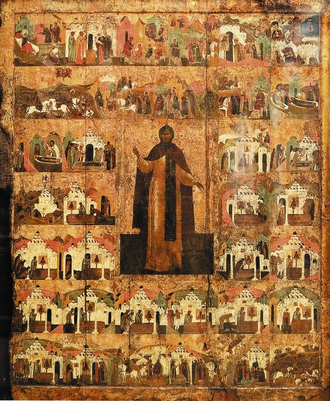 В XVII в. продолжали развиваться обе линии иконографии. К началу столетия относится житийная икона св. Александра Невского, хранящаяся в приделе Входа Господня в Иерусалим собора