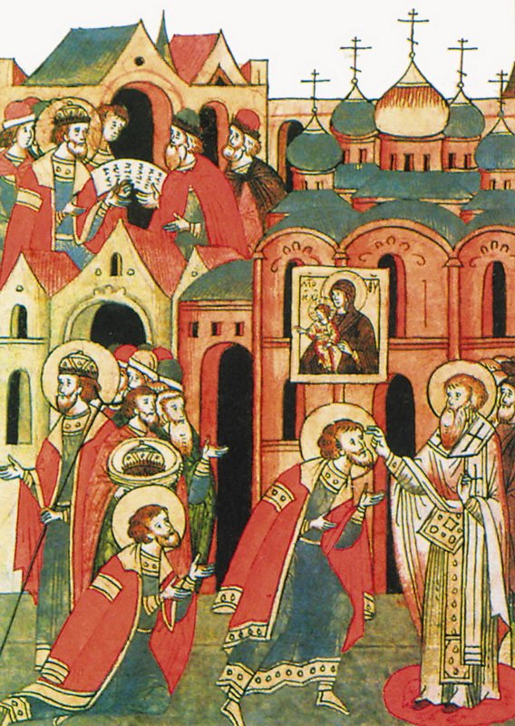 Образы святых и несвятых князей Древней Руси включались в состав особых иконографических программ дворцовых храмов, например, Архангельского и Благовещенского соборов Московского Кремля, а также Новоспасского монастыря — усыпальницы Романовых. Если в Благовещенском соборе князь Александр изображен в монашеском облачении, то на фресках Архангельского собора в слое живописи XVII в. — согласно традиционной княжеской иконографии — в плаще и шапке.