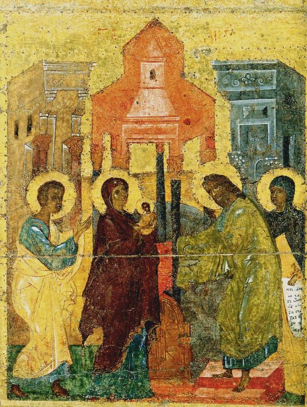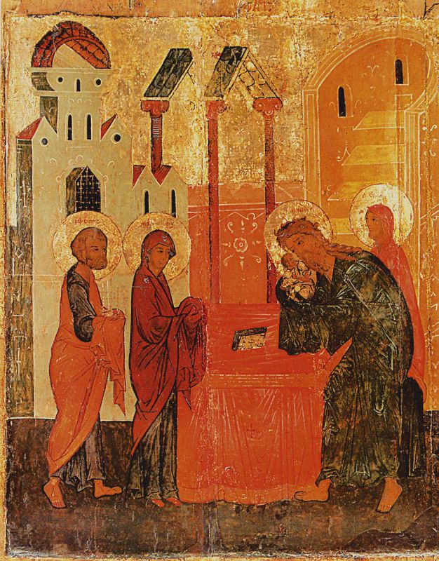 На древнерусских иконах Сретения Господня бывает представлена различная иконографическая композиция — но как выразителен и исполнен глубокого духовного смысла каждый из дошедших до нашего времени шедевров!