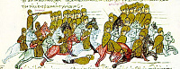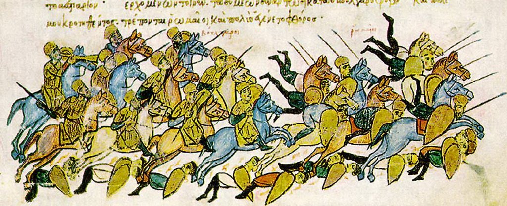 Целый ряд интересных изображений военных побед известен по миниатюрам византийских и древнерусских лицевых рукописей. Многие из этих миниатюр достаточно подробно изображают отдельные эпизоды сражений, в которых одерживали победы воины Византии и Древней Руси. Например, миниатюры «Хроники» Иоанна Скилицы — рукописи конца XII в. из Национальной библиотеки в Мадриде — почти сплошь изображают батальные сцены, очень подробные и выразительные.
