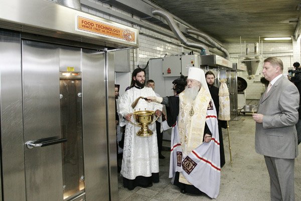 На хлебокомбинате Владыку встречали его сотрудники во главе с директором И.В. Лариным. Пройдя в специально созданный для выпечки просфор цех, митрополит Ювеналий рассказал собравшимся о значении и высоком месте просфоры в православном богослужении и, после литии о погибших в катастрофе, освятил печи и помещение. Сотрудники ЗАО "Щелковохлеб" рассказали о процессе выпечки и показали, каких результатов они уже достигли.