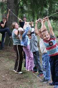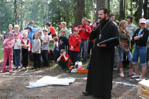 Богородская православная гимназия ? это большая дружная семья, и нынешний праздник получился по-настоящему семейным: в нем участвовали младшие братья и сестры, бабушки и дедушки гимназистов, а также выпускники разных лет ? всего более 200 человек. На большой поляне на берегу лесного озера была устроена игровая площадка, где проходили веселые конкурсы. Обязательным условием соревнований было участие родителей вместе с детьми. Конкурсы придумали самые разные: от хождения по канатной дороге и преодоления полосы препятствий до метания сосновых шишек. Арбитры ? учителя, считавшие баллы, набранные каждым классом, отметили, что во многих видах ?спорта?, например, прыжках со скакалкой, родители не уступают детям. Затем прошел самый вкусный конкурс: на лучший праздничный стол. Компетентное жюри во главе с директором гимназии протоиереем Михаилом Яловым оценивало труд каждого класса. Родители и ребята подошли к заданию творчески и вложили в его выполнение столько фантазии и выдумки, что сделать выбор было очень непросто. Победу присудили третьему классу ? за оригинальное решение и стилевое единство (третьеклассники оформили стол в русском стиле, украсили колосьями и полевыми цветами и встретили жюри хлебом-солью), а потом начался пир. При этом гимназисты могли не ограничиваться собственными кулинарными произведениями, а попробовать и блюда походной кухни: горячие сосиски и чай с плюшками. После трапезы был концерт, в котором участвовали гимназический вокально-инструментальный ансамбль и ансамбль народных инструментов ?Красно Солнышко?. Желающие могли также поиграть в волейбол, покататься на лошадях, а самые ловкие и меткие были допущены на площадку для игры в пейнтбол.