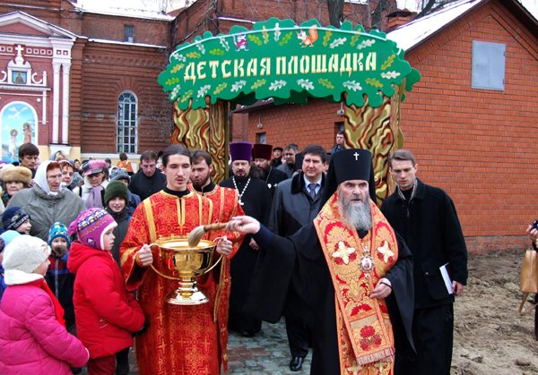Высокопреосвященнейший Григорий наградил благословенными митрополичьими грамотами клириков Богородицерождественского собора. После этого внимание Владыки и гостей обратилось к новому объекту благоустройства храмовой территории. В воскресные и праздничные дни храм наполняется не только взрослыми, но и детьми. Для маленьких прихожан старанием жертвователей и властей города был обустроен детский городок. По окончании Литургии состоялось его торжественное открытие и освящение.