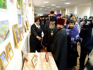 Архипастырский визит продолжился Рождественскими районными чтениями в Ликино-Дулевском доме культуры ?Спутник?. Там была торжественно открыта выставка народного творчества школ искусств Орехово-Зуевского района, также образцы своей продукции выставил всемирно известный Дулевский фарфоровый завод.