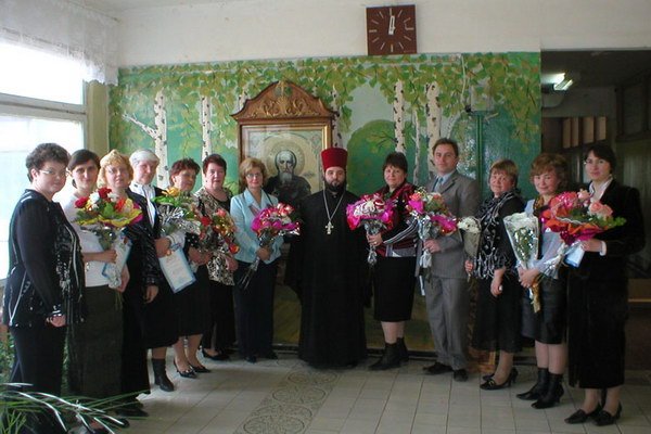 После молебна учителя провели экскурсию по школе: показали гордость школьной истории – краеведческий музей, выставки работ учащихся, таких, например, как рисунки, фигурки из пластилина, мягкие игрушки, предметы из дерева, плетеные корзины и многое другое. Затем дорогих гостей пригласили на концерт, посвященный святым Кириллу и Мефодию, подготовленный учащимися-выпускниками совместно с младшими классами. Прозвучали выступления школьного хора, хора воскресной школы при Покровском храме с. Яковлево, выступили также и преподаватели. После концерта директор школы А.В. Луканин вручил грамоты руководителю художественного кружка при воскресной школе Покровской церкви села Яковлево Н.А. Захарченковой, руководителям детского православного хора при храме В.В. Арефьевой и Г.П. Ананиной.