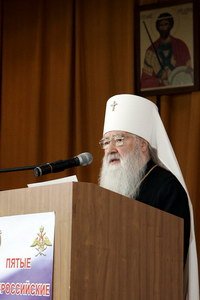 Сердечно приветствую вас, прибывших из разных концов нашего Отечества, чтобы обменяться опытом и наметить пути дельнейшей деятельности. Мы рады тому, что в нашей стране складываются благоприятные условия для возобновления прерванного почти на столетие служения Церкви в Армии. На протяжении веков наше духовенство окормляло защитников Отечества.