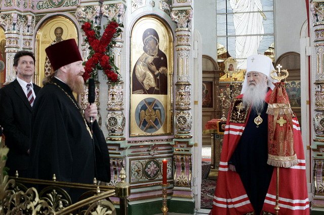 Я очень счастлив, что вы, дорогие братья и сестры, собрались во множестве на совместную молитву. Я думаю, это заслуга Вашего настоятеля, отца Андрея, который всегда был известен мне своим благочестием, трудами и преданностью Христу. От имени всех вас я хочу поздравить отца Андрея с праздником и преподнести ему пасхальное яйцо с восклицанием: Христос воскресе!. Пусть Господь хранит тебя на многая лета!