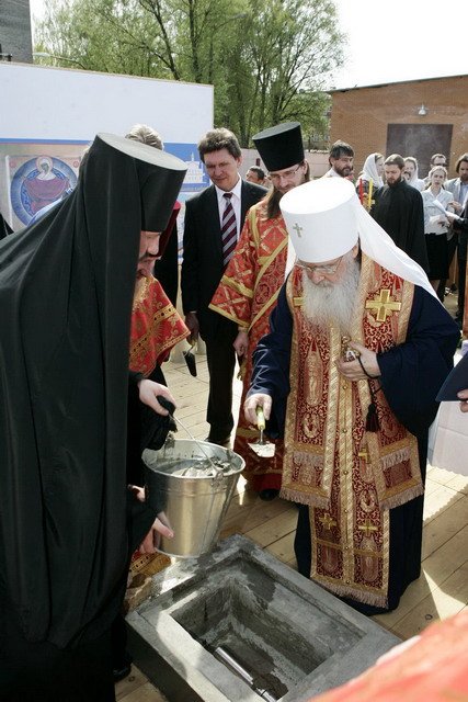 Директор ЗАО «Щелковохлеб» И.В. Ларин принял гостей праздника на возглавляемом им предприятии, где митрополит Ювеналий возглавил чин закладки храма в честь иконы Божией Матери «Спорительница хлебов». Его Высокопреосвященство сопровождали глава района А.М. Ганяев и глава городского поселения Т.Б. Ершова. Огромный коллектив крупнейшего предприятия Щелково искренно приветствовал архипастыря, молитвенно участвуя в освящении места под строительство будущего Дома Божия. По окончании чина закладки храма Владыка митрополит обратился к собравшимся: