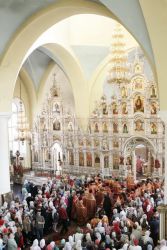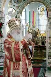 Мы продолжаем это апостольское служение и в наших храмах, и, слава Богу, вне пределов храмов, потому что живем в такое счастливое время, когда не чинятся препятствия для проповеди Евангельского слова. Сегодня 36 священнослужителей совершали со мной Божественную литургию. Мне хочется обратиться особенно к ним, с одной стороны, поблагодарив их за усердные, самоотверженные, жертвенные труды на приходах и, в то же время, напомнить: с открытием храма, с его реставрацией или строительством не заканчивается наша церковная миссия, а, наоборот, мы приобретаем еще большую ответственность, потому что к нам обращаются те, кто с детства воспитывался в атмосфере атеизма, отрицания Бога. Эти люди, придя в храм, чувствуют умиление, ощущают Божию благодать, но не знают церковного учения о спасении, не знают, как молиться, не знают, как исполнять заповеди Христовы. Много теперь приходит к нам детей, и мы стараемся при каждом храме иметь воскресные школы, чтобы просветить светом Христова учения будущее Церкви подрастающее поколение. Нам необходимо научить детей любить Бога и ближних, почитать своих родителей, любить свое земное Отечество, а, если потребуется, встать на защиту его священных рубежей. Мы радуемся, что у нас налажено плодотворное сотрудничество с министерством образования, и, благодаря этому, во многих учебных заведениях в разных формах преподаются основы веры и православной культуры.