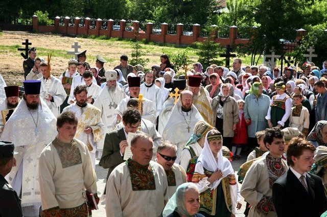 К приезду Владыки архиепископа храм уже был переполнен. У центральных врат храма его встречали дети воскресной школы с караваем и почетный караул из бойцов военной части № 42761. Хор, сотрудники храма, воспитанники воскресной школы и некоторые прихожане были одеты в народные костюмы. Крой и фасон этой одежды был разработан певчей хора Анастасией Афанасьевой, которая провела настоящую исследовательскую работу и нашла сведения о том, каким был 100 лет назад праздничный костюм в нашей губернии. Владыка Григорий высоко оценил это начинание, отметив, что оно может стать своего рода «искусной модой» наряжаться на праздник в традиционные для нашего народа одежды. Это поможет возрождать русскую культуру.