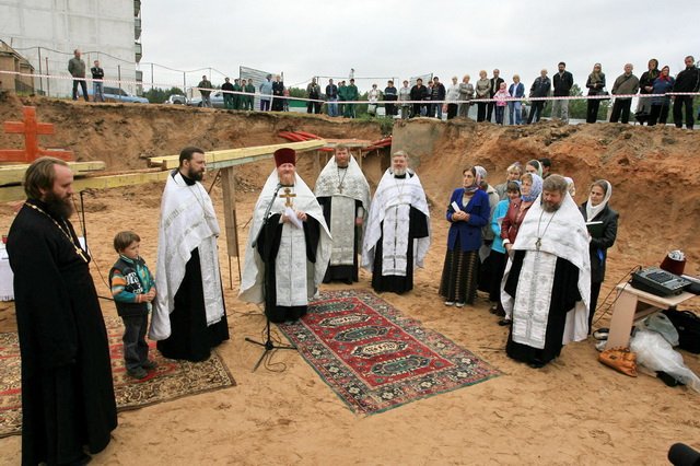По благословению митрополита Ювеналия закладку храма совершил благочинный церквей Щелковского округа протоиерей Андрей Ковальчук в сослужении благочинного Троицкого округа г. Москвы, настоятеля Пантелеймоновской церкви г. Фрязина протоиерея Сергия Киселева, настоятеля строящейся церкви иерея Антония Сенько и клириков Щелковского благочиния. C жителями поселка молились благодетели новостроящейся церкви, глава сельского поселения Трубинское В. Н. Углов, который на собрании прихода был избран помощником председателя приходского совета. Ему же принадлежит идея строительства этого храма. Инвестором стройки является ООО «Стройсервис» под управлением генерального директора Ю. В. Денисова. Эта организация благотворительно выполнила проект и рабочие чертежи храма и согласилась финансировать строительство церкви на всех этапах. Рядом с местом постройки храма регулярно (по субботам в полдень) будут проходить молебны перед иконой Божией Матери «Неупиваемая Чаша». В серпуховском Высоцком монастыре, где не так давно побывали отец Антоний и В. Н. Углов, специально для строящегося храма будет сделан список с чудотворной иконы, пребывающей в обители. На сегодняшний день закончены рабочие чертежи церкви, а к зиме планируется вывести её под купол.