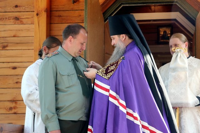 По окончании богослужения Владыка Роман передал собравшимся благословение митрополита Ювеналия и вручил патриаршую награду — орден св. блгв. кн. Димитрия Донского III степени — командиру части полковнику