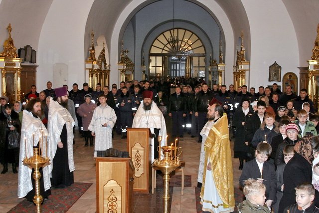 В храме собрались сотрудники ГИБДД во главе с командиром 5-го специализированного батальона 2-го спецполка Дорожно-патрульной службы ГУВД Московской области полковником Валерием Пылаевым, учащиеся православной гимназии имени сщмч. Константина Богородского и других школ района, педагоги. После молитвы отец Михаил обратился к присутствующим со словом проповеди и окропил всех святой водой.