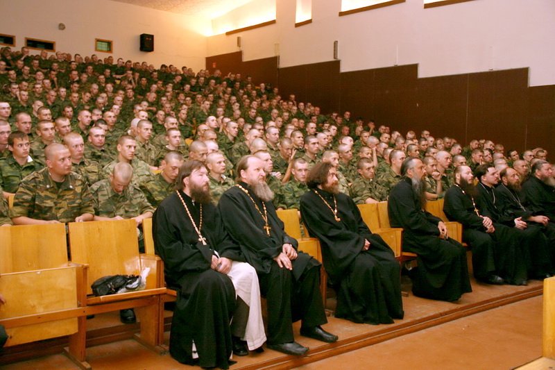 Военнослужащие собрались в актовом зале части. К ним обратились полковник С. П. Пастухов и протоиерей Михаил Ялов, подчеркнувший, что, какие бы трудности ни возникали в нашей жизни, унывать нельзя, ибо Господь всегда рядом. Был показан фильм «Небесный воин» — о подвиге подполковника Константина Васильева, который отдал свою жизнь, спасая заложников во время трагедии на Дубровке. Фильм вызвал живой эмоциональный отклик аудитории. Затем духовенство и военнослужащие разошлось по ротам и отрядам для индивидуальных бесед.