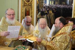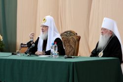 Дай Бог, чтобы так сегодня развивалась работа в Церкви. Поэтому благодарность присутствующему духовенству я бы хотел сопроводить очень горячей поддержкой всем тем, кто сегодня трудится, кто несет ответственность за судьбу народа и страны, потому что именно такой масштаб зрения должен быть сегодня в Церкви, и, если это зрение будет сопровождаться не только способностью различать буковки, не только способностью находить правильное слово, обращаясь к людям, но и молитвой, духовным подвигом, то действительно, по молитвам новомучеников и исповедников Российских, Русская Православная Церковь XXI века окажется способной возродить веру в нашем народе.