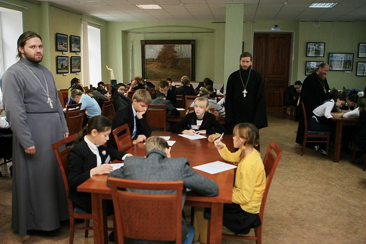 Протоиерей Андрей Ковальчук, благочинный церквей Щелковского округа, сказал напутственное слово и благословил участников олимпиады. В ней приняли участие 56 лучших гимназистов, под руководством преподавателей ОПК: клириков Троицкого собора г. Щелково — священника Максима Алифанова, священника Анатолия Чистова (филиал в Щелково), настоятеля Владимирского храма села Маврино протоиерея Дионисия Иванова (филиал в Душоново) и