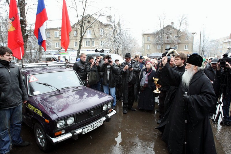 По окончании митинга Владыка освятил автомобили, участвующие в автопробеге, организованном в городе с целью призвать людей соблюдать правила дорожного движения. Глава городского округа Электросталь А. Суханов дал старт автопробегу.