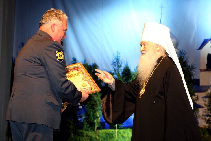 Затем Владыка митрополит вручил благословенные грамоты начальнику ОГИБДД УВД по г. Электросталь подполковнику милиции Александру Маскаеву и главному специалисту управления по культуре и делам молодежи администрации городского округа Электросталь Марине Прониной, которые активно взаимодействуют с Церковью, оказывая помощь в организации и проведении