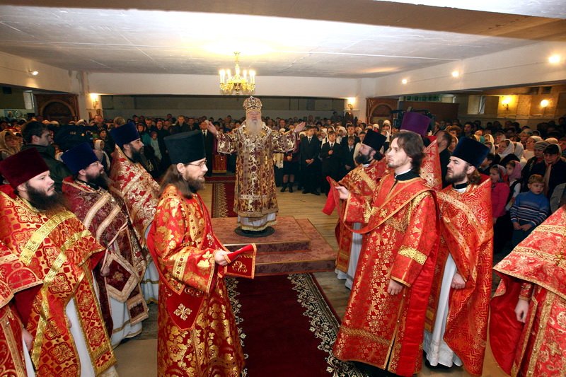 Большое дело, великое и спасительное для города — строительство храма Божиего, потому что это место, где вся жизнь человека, православного христианина освящается от рождения и до смерти. Здесь в течение своей жизни православный христианин получает помощь Божью в несении своего жизненного креста. Меня, конечно, огорчило, что строительство этого храма превратилось в долгострой, и сегодня мы как в катакомбах с вами молимся в тесноте, но Господь везде пребывает, и здесь мы совершили Божественную литургию, многие из вас сподобились причаститься Святых Христовых Таин. Я горячо и сердечно поздравляю вас и призываю на всех Божие благословение.