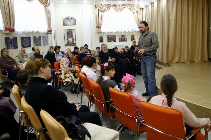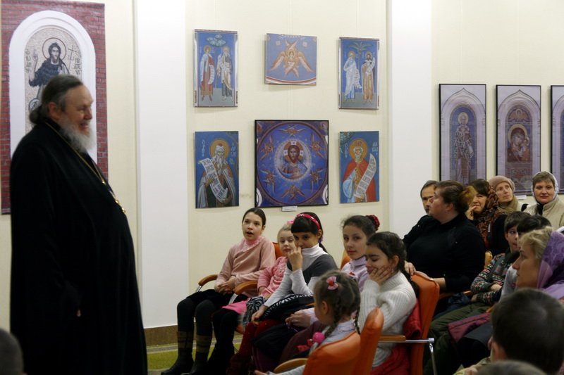 Первыми посетителями выставки стали воспитанники воскресной школы Преображенского храма — многие из них занимаются в художественной студии и, возможно, со временем изберут творческий путь