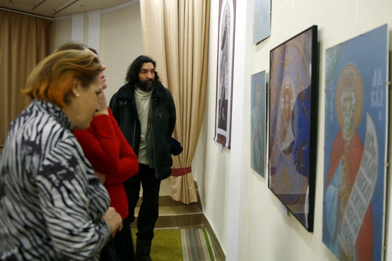 9 января в концертном зале Преображенского храма г. Балашихи открылась выставка «Современное монументальное искусство в православном храме». На выставке представлены копии мозаичных работ и фресок художников Алексея Проценко и Алексея Носенко, сделанные ими для храмов и монастырей Московской епархии.