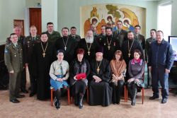 Член Епархиального отдела по работе с Вооруженными силами, настоятель храма святого царя страстотерпца Николая священник Александр Шкуренко рассказал о тех формах работы, которые уже ведутся духовенством в воинских частях: священники служат молебны, освящают знамена и боевую технику, приглашаются командованием на торжественные церемонии принятия воинской присяги новобранцами. О необходимости более тесного сотрудничества армии и Церкви говорили на конференции и священники, и военнослужащие.