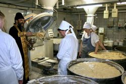 Отец Михаил тепло поблагодарил директора и весь коллектив комбината за жертвенную помощь: на протяжении многих лет Ногинский хлебокомбинат безвозмездно снабжает благотворительные трапезные Богоявленского собора города свежим ржаным хлебом «Богородский». В минувшем году руководство комбината также пожертвовало приходу собора большую партию куличей, которые были розданы военнослужащим подшефных частей, заключенным и пациентам городских больниц.