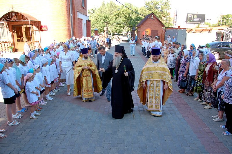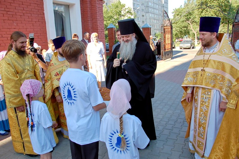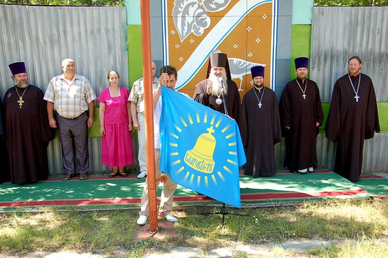 На торжественной линейке поотрядно построились воспитанники, а начальник лагеря Ю. Н. Фомичев отрапортовал Владыке Роману о полной готовности Пятого Московского областного Епархиального детско-молодежного лагеря труда и отдыха «Благовест».