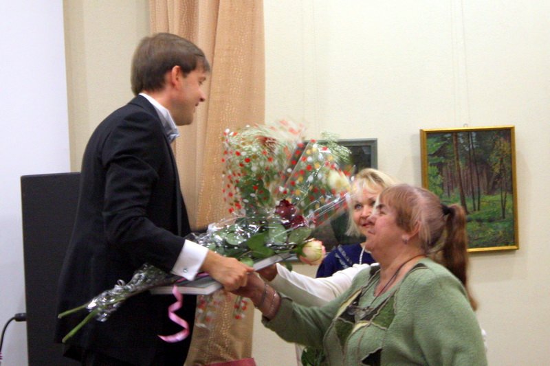 Уже в начале первого отделения Олег Евгеньевич предложил гостям, если есть желание, присылать вопросы; и после антракта солист обнаружил на своем стуле целый ворох записок. Столь живой отклик аудитории и определил ход следующего отделения. Слушатели буквально засыпали Олега Погудина вопросами: о творческих планах и мечтах, концертных программах и конкретных концертах, литературных и музыкальных вкусах; просили исполнить любимые песни.