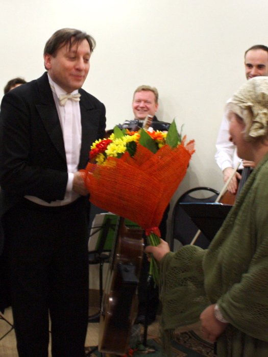Виновнику торжества Михаилу Радюкевичу подарили множество цветов и даже букет в виде гитары. Тепло поздравил Михаила и настоятель храма архимандрит Николай (Погребняк): накануне у юбиляра был день ангела, и отец Николай подарил музыканту икону его небесного покровителя — Архистратига Михаила.