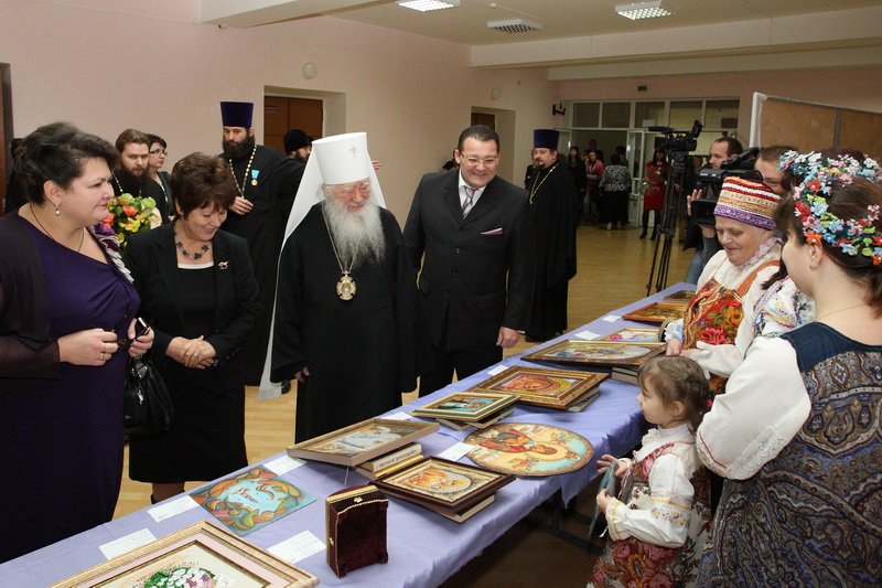 В город Павловский Посад съехались представители благочиний Московской епархии и руководители муниципальных отделов образования Московской области. В фойе участники смогли ознакомиться с выставкой детского творчества и прикладного искусства, организованной Домом детского творчества г. Павловского Посада.