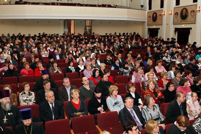 В начале торжественного заседания был пропет тропарь праздника Рождества Христова, который исполнил сводный хор воспитанников воскресной школы и церковного хора Вознесенского храма Павловского Посада. Заседание открыли приветственными словами депутат Государственной Думы РФ В. Я. Пекарев и глава администрации Павлово-Посадского района А. Ю. Лютоев. С размышлениями о путях развития образования и духовно-нравственного воспитания выступила министр образования Московской области Л. Н. Антонова, которая в своем докладе изложила проблематику нравственного воспитания, стоящую перед современной системой образования, и описала круг задач, продиктованных современностью.