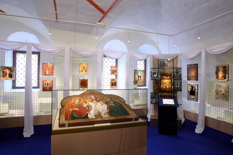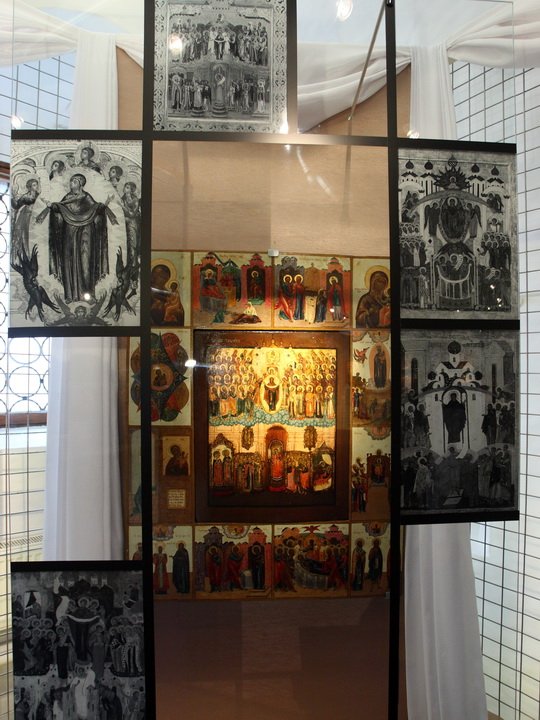 По окончании богослужения в Софьиных палатах Новодевичьего монастыря состоялось открытие новой экспозиции: «Величай, душе моя, Пречистую Деву!», на которой представлены иконы Богородицы XIX — начала XX вв. из собрания обители.