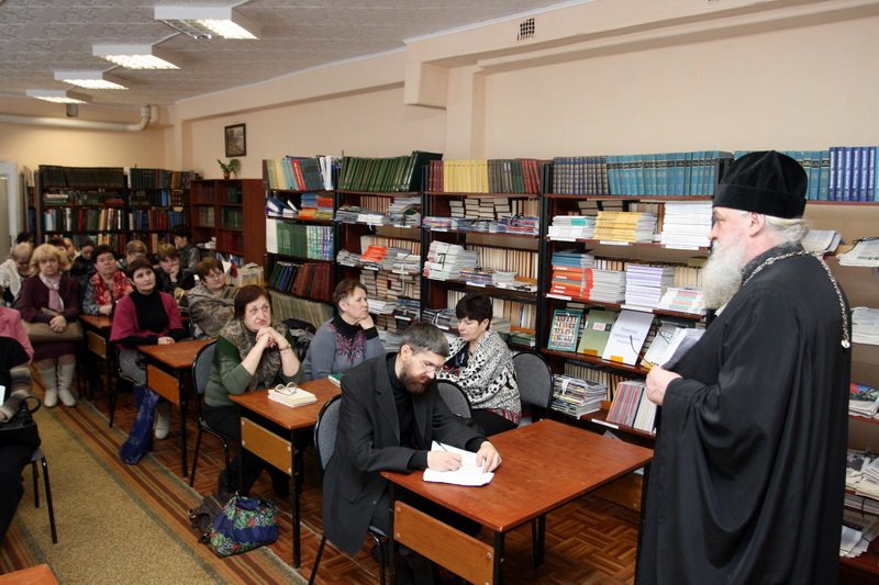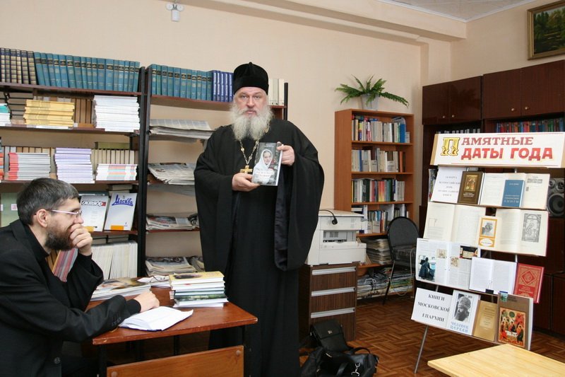 В рамках этого праздника состоялся семинар, на котором присутствовали библиотечные работники района и сотрудники приходских библиотек благочиния. Задача семинара состояла в том, чтобы показать роль книги, и в особенности православной книги, в формировании личности человека. Главным докладчиком этого семинара стал настоятель храма Рождества Христова села Заозерье протоиерей Сергий Николаев, который является автором православных книг, посвященных вопросам приходской жизни, православного брака и воспитания детей, а также ведет рубрику «Слово пастыря» в православном журнале «Славянка». Отец Сергий сделал обзор книг, выпущенных Издательством Московской Патриархии за последнее время, порекомендовал ряд православных авторов, как древних, так и современных, для домашнего чтения. По завершении доклада отец Сергий ответил на вопросы и передал дар Центральной библиотеке комплект православного журнала «Славянка» и несколько собственных книг.