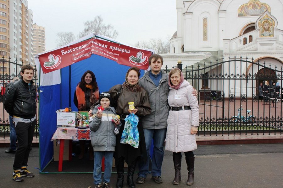 «Хочу помочь!» — это благотворительная акция, которая проводится уже четвертый год подряд при поддержке администрации города Балашиха и коммерческих компаний — они помогают типографскими услугами, покупкой палаток, информационной поддержкой. Но главная ударная сила — это, конечно, волонтеры. Причем не только те, кто стоят за прилавками и рассказывают об акции, но и масса людей, которые остаются «за кадром». Многие работают с учреждениями, кто-то рисует плакаты, сортирует и перевозит поделки и реквизит, координирует проведение акции. Вот и в прошедшую Великую субботу, 14 апреля, перед каждым из девяти храмов Балашихи, Железнодорожного и Реутова, участвовавших в акции, ярмарка встретила желающих освятить куличи, яйца и пасхи. Ведь в этот день храм по традиции навещают не только постоянные прихожане, но и люди, которые не часто заходят в церковь. Многие посетители, входя в храмовую ограду, уверенной походкой сразу же направлялись к палаткам и столам благотворительной акции. Пожалуй, они могли бы не хуже волонтеров рассказать про условия акции: каждый может приобрести за пожертвование трогательные поделки и сувениры, сделанные детскими руками. Таким не хитрым способом люди могут не только приобщиться к вере, но и принять участие в добром деле — помочь больным и обездоленным детям. Ведь цель — это не просто сбор денег! Очень важно еще и научить здоровых детей милосердию, состраданию, добру к своим больным сверстникам, и это тоже часть православной миссии.