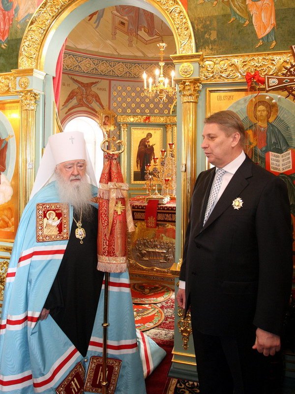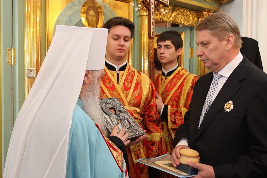 Я знаю, что Игорь Викторович скромный человек, и он никогда нигде не говорит о своих добрых делах. Но бывают дни, когда по-человечески у нас принято поздравлять того или иного члена нашей семьи или с Днем Ангела, или с другими событиями жизни, и вот сегодня у нас счастливый повод поздравить его с 60-летием со дня рождения. Этот день пал на Страстную седмицу, и Игорь Викторович, как православный христианин, посчитал для себя невозможным праздновать день рождения в тот день, когда православные пребывают в глубокой молитве и вспоминают страдания Спасителя нашего, Который претерпел их ради нас и ради нашего спасения. И поэтому в сегодняшний день мы можем от души поздравить вас с юбилеем, дорогой Игорь Викторович, и выразить вам глубокие чувства нашей благодарности и радости, что вы показываете пример, как состоятельные люди могут служить ближним своим. Святейший Патриарх Кирилл, который 11 сентября прошлого года пребывал в Щелково и совершал в Троицком соборе Божественную литургию, посещал этот святой храм и сам видел плоды вашей жертвенности, удостоил вас к юбилею награждения орденом Русской Православной Церкви преподобного Даниила Московского II степени. Я с радостью вручаю вам эту награду с молитвенным пожеланием здоровья, помощи Божией в ваших трудах, и прошу принять эту святую просфору, из которой была вынута частица за ваше здоровье сегодня за Божественной литургией. Как видимый знак моего благословения я привез вам из обители образ Иверской иконы Божией Матери, Покровительницы нашего Новодевичьего монастыря, где также есть следы вашего внимания и заботы. Позвольте заверить вас, что и сестры обители молятся о вас и ваших близких, и все мы желаем вам благополучия, помощи Божией, здоровья и во всем благого поспешения. Да благословит вас Царица Небесная на многая и благая лета!»