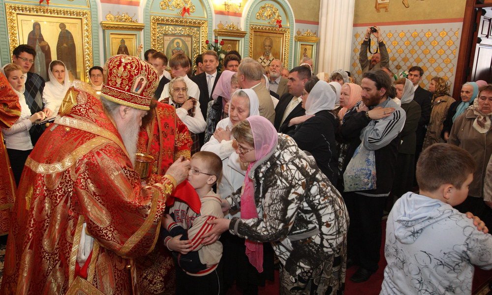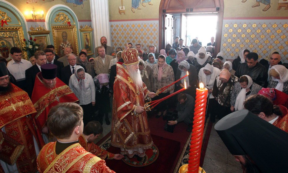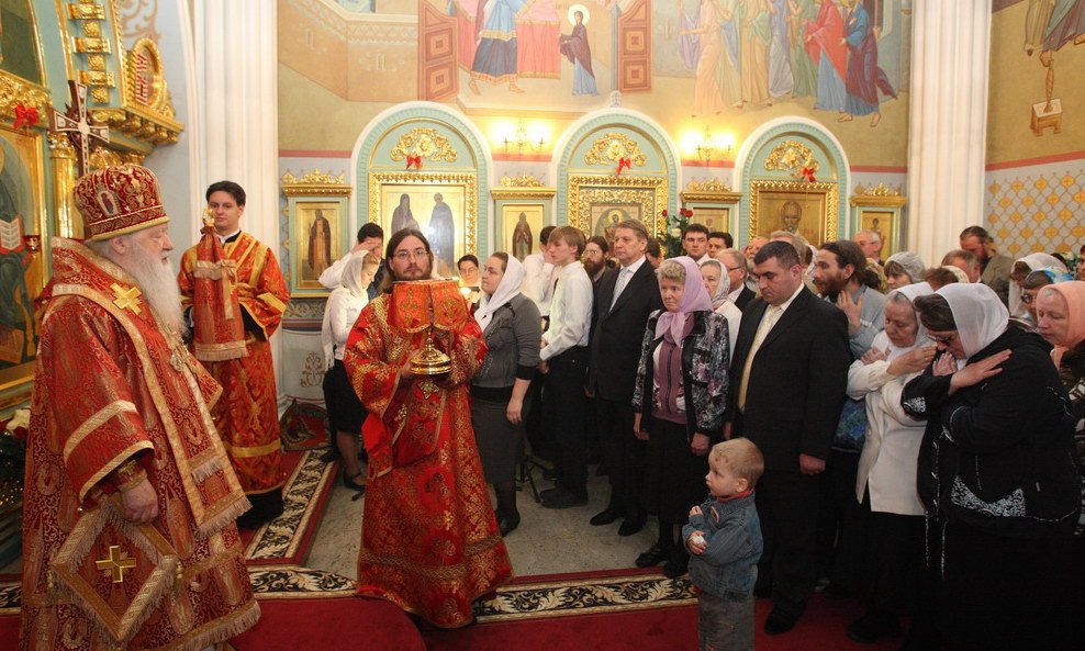 «Глубокоуважаемый Александр Матвеевич, дорогая Татьяна Борисовна, возлюбленный Игорь Викторович, всечестные отцы, дорогие возлюбленные братия и сестры! Христос Воскресе! Мы с вами отмечаем великий и спасительный праздник Святой Пасхи. Великий во всех отношениях, потому, что он вселяет в нас веру в Воскресшего Господа и в наше всеобщее воскресение. Он велик и по продолжительности, мы 40 дней отмечаем его молитвой и богослужением. В эти дни мы воспоминаем о том, что Господь после Воскресения в течение 40 дней являлся ученикам Своим и апостолам перед Вознесением на небо. И все эти пасхальные дни мы вспоминаем учение Господа, оставленное и запечатленное в Святом Евангелии, которое читается у нас за каждой Божественной литургией. Еще вспоминаем, как после Вознесения на небо жили святые апостолы и первые христиане. На Божественной литургии в пасхальный период читается книга Деяний святых апостолов, где рассказывается и о проповеди апостолов, и об устроении Церкви, общин христианских, и как апостолы совершали чудеса в уверение того, что их Божественный Учитель поистине Сын Божий. И, наконец, мы вспоминаем, как последователи Господа в своей повседневной жизни воплощали учение Христово. Поразительны слова, которые описывают, что у них было все общее, они приносили все, что имелось, к ногам апостолов и жили в этой общине верующих, деля друг с другом свое имущество и материальные блага. Но было бы несправедливо, если бы в Евангелии описывалась только одна добродетель, так же и в книге Деяний, и в посланиях апостолов. Здесь ведь отражалась подлинная жизнь, а она полна не только добрых дел, но и отступлений от Господа, грехов человеческих, и вот в сегодняшний день вы слышали чтение из книги Деяний о грехопадениях первых христиан. Там рассказывается о двух супругах, Анании и Сапфире. (Деян. 5:1-11). Они, видимо, были очень богаты, так как повествуется, что они продали село, а по обычаю тому они добровольно должны были принести к ногам апостолов все, что они получили, чтобы этим жила община, а супруги сговорились, что они скажут лишь о части полученного. И вышло так, что когда Анания пришел к апостолу Петру в присутствии общины и стал передавать полученное за продажу своего села, апостол Петр, провидя Духом Святым обман, обличил его. Книга Деяний повествует, что в этот момент замертво упал Анания. Это было назидание для первохристианской общины, что перед Богом нельзя утаить обмана. Прошло какое-то время, и его жена, не знавшая о происшедшем, так же сказала не обо всем, что получено, и этот сговор с мужем воплотила перед лицом общины христианской. И ее так же обличает апостол Петр, и мы слышали, что ее в этот момент также постигла смерть. Для нас это очень назидательно, потому что напрасно думать, что Бога можно обмануть так же, как мы друг друга обманываем. Мы должны служить Господу и ближним своим пред лицом нашего Спасителя.