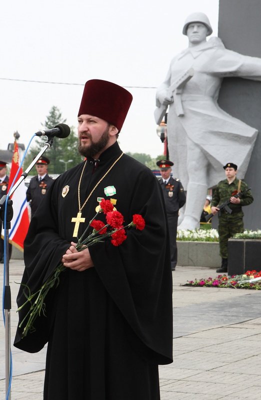 В торжественном митинге, посвящённом Дню Победы, у обелиска Победы в г. Ликино-Дулёво приняли участие: глава Орехово-Зуевского района А. П. Филиппов, благочинный церквей Орехово-Зуевского округа протоиерей Андрей Коробков, члены районного депутатского корпуса, сотрудники администрации, ветераны, члены общественности, городские молодежные организации, ученики школ, сотрудники СМИ и горожане. После поздравительного адреса главы района, со словами благопожеланий к присутствующим ветеранам обратился отец благочинный.
