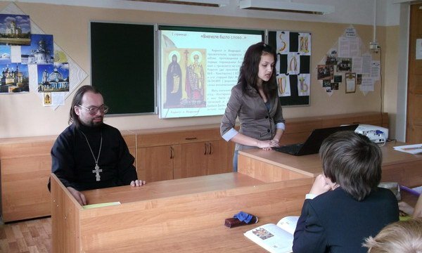 24 мая в сельской школе поселка Радовицкий среди 5–11 классов был проведен классный час, посвященный Дню славянской письменности и культуры. На уроке присутствовали 56 детей, учителя школы и настоятель храма иконы Божией Матери «Нечаянная Радость» поселка Радовицкий священник Алексий Цыганков.