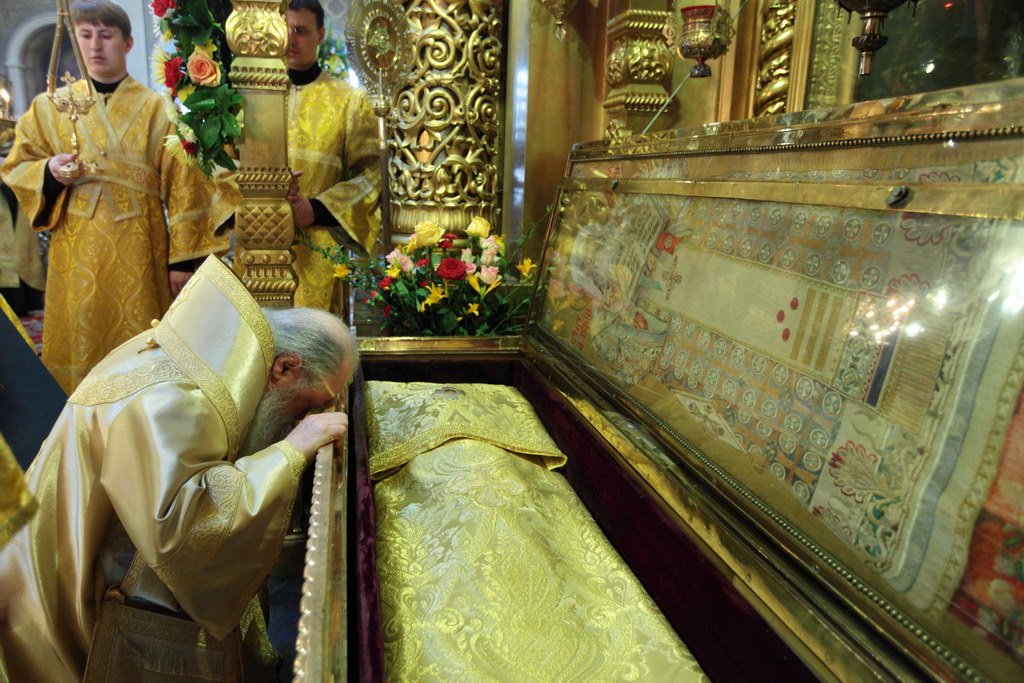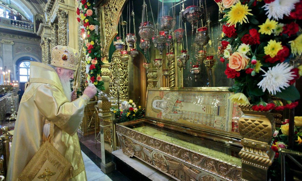 Перед святыми мощами святителя и чудотворца Алексия был совершен праздничный молебен.